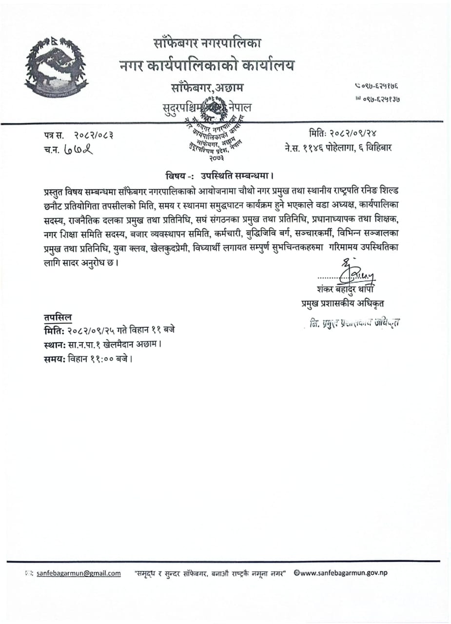 समृद्ध र सुन्दर साँफेबगर, बनाऔँ राष्ट्रकै नमूना नगर।