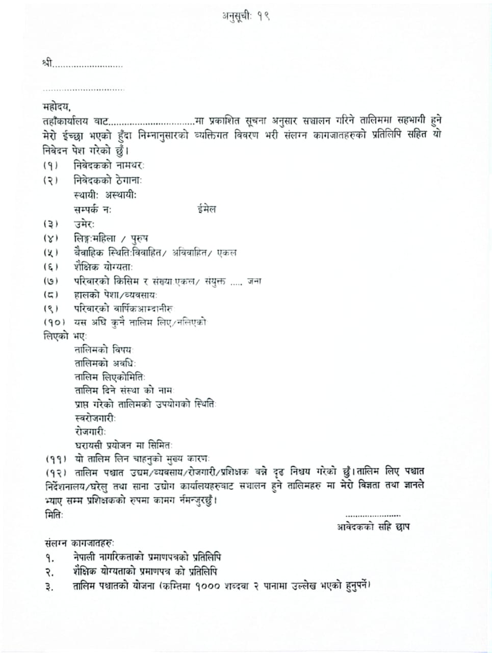 तालिममा सहभागी हुन आवेदन फारम भर्ने सम्बन्धी सूचना ।
