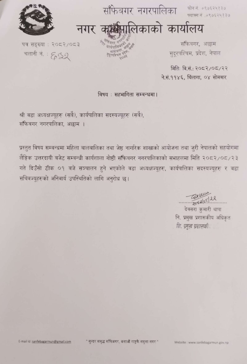सहभागिता सम्बन्धमा । (श्री वडा अध्यक्ष र कार्यपालिका सदस्य सबै)